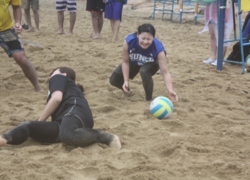 しかし、地区大会から勝ち上がったチームや、チャンピオン大会に照準を併せて練習を重ねたチームなど、多少の欠場はあったものの、風雨激しい中好ゲームが数多くみられ、風雨をものともしない熱い戦いが続いた。