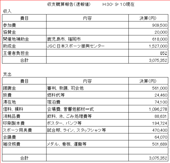 平成30年度 九州サンカップ’18 終了のご報告