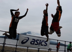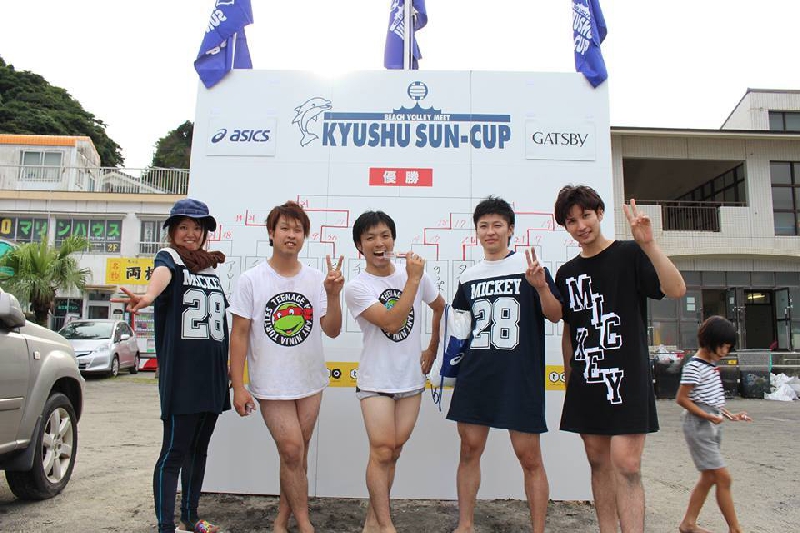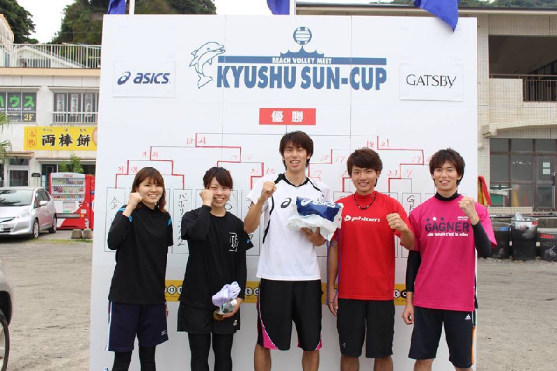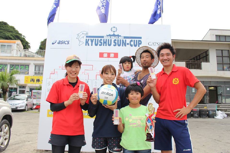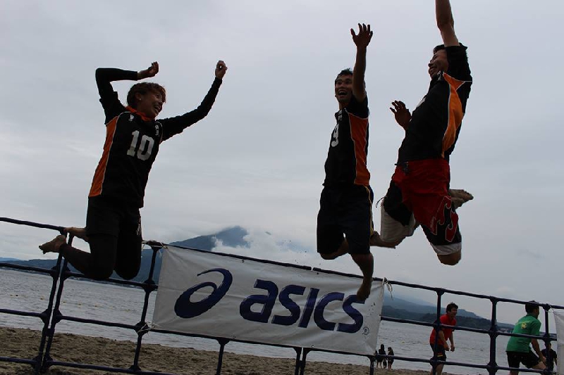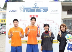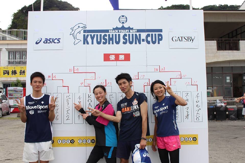 昨年の覇者「りんりんりん」との大激戦。一つのミスも許されない場面。見ている方も呼吸をするのを忘れるぐらいの緊張感の中、少しお見合いをしてしまった!かろうじて返したボールはサイドラインの外に落ちてしまいました。その瞬間、「KOARA」の選手全員の両腕が空高く掲げ上げられました!! 見てください!これがKYUSHU SUN-CUP2015かごしま大会優勝チーム「KOARA」です。